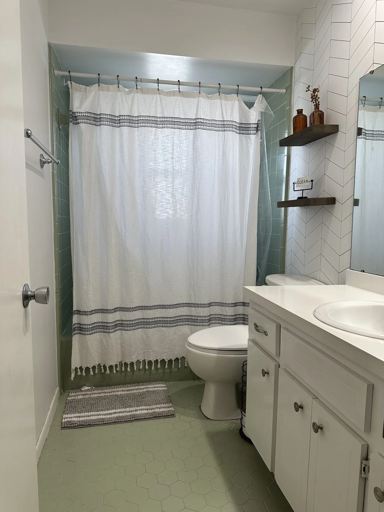 All in, I spent $317.39 on the upgrades and I have to say that this space feels like a whole new bathroom. We have been doing so many major renovations in our home this past year so being able to tackle a quick and budget-friendly makeover brought me so much joy. My goal was to find high-quality products that didn’t break our budget and Lowe’s had so many options for me to choose from. I think this bathroom proves that you don’t need to demolish a room or spend a fortune to transform the look of a space in your home!