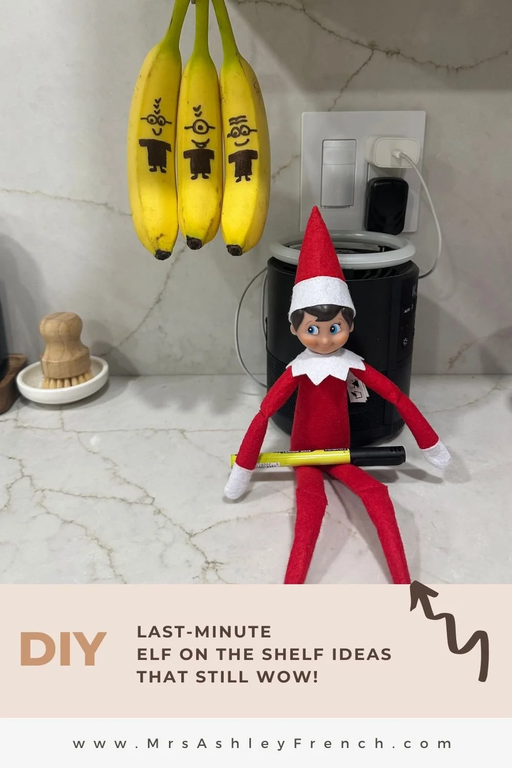 Elf Banana Art - Using a permanent marker, draw faces on your bananas, oranges, or avocados and leave the marker sitting on the elf’s lap next to the fruit. My son loves minions so I tried to make the faces resemble the minions.
