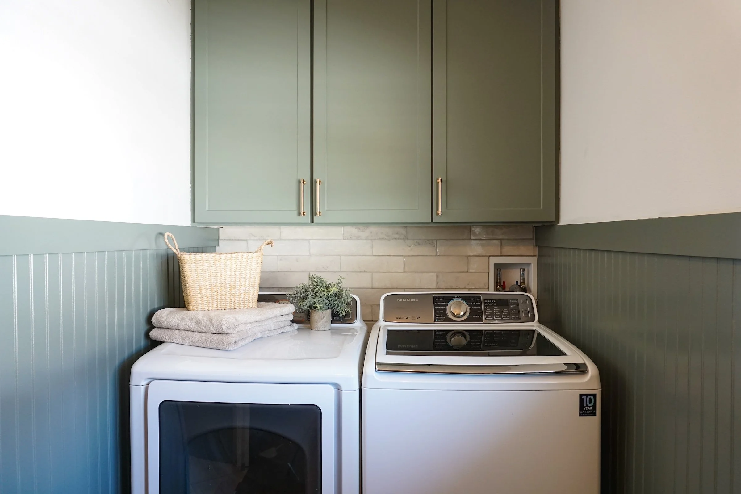 Accent Walls: Add some character and elevate the look of your laundry room with board and batten wall trim or a classic beadboard paneling. Checkout my YouTube Channel for step-by-step tutorials on how do each of them.