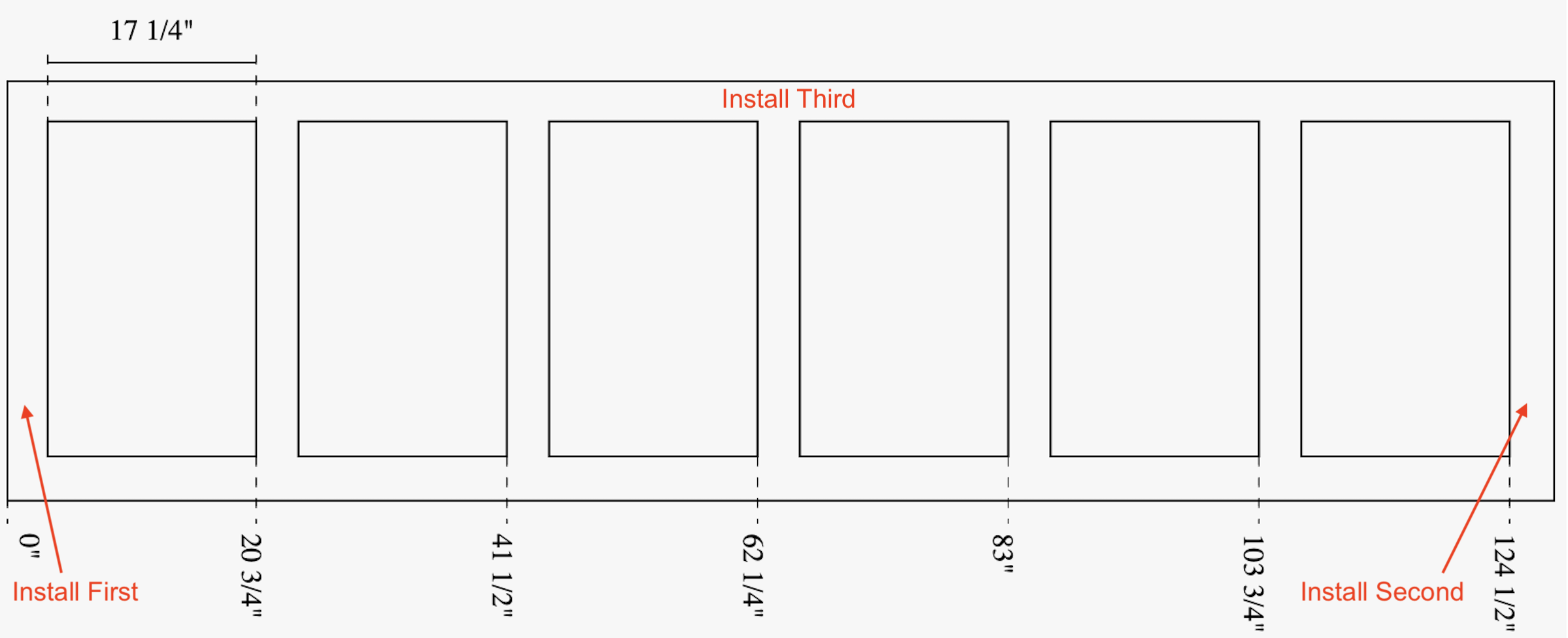 In my full-length, detailed YouTube video on Installing Board and Batten, I recommend installing your furthest left vertical board first, your farthest right vertical board second, and then your top horizontal board on top ensuring the horizontal board is level (see below). Something I have learned after remodeling three homes is that no home has straight, level, or plumb walls and ceilings. In theory, all of your vertical boards should be the exact same length.